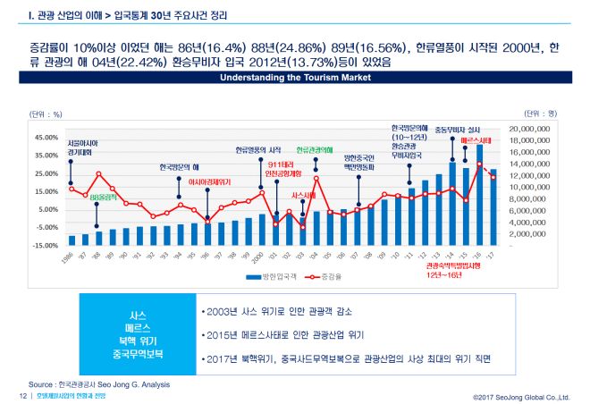 정치 경제 사회적 이슈에 따라 관광객 변동 현황 <자료 제공 서종글로벌>