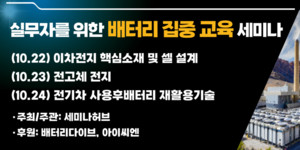 [스타트업투데이] 세미나허브가 오는 10월 22일부터 24일까지 사흘간 서울 여의도 FKI타워 컨퍼런스센터에서 ‘실무자를 위한 배터리 집중교육 세미나’를 개최한다고 1일 밝혔다.최근 글로벌 이차전지 산업은 친환경 정책, 전기차 수요 증가, 에너지 저장 기술 고도화에 힘입어 전례 없는 성장을 이어가고 있다. 특히 리튬이온 배터리를 비롯해 고에너지 밀도 전지의 수요가 확대되고, 차세대 전지 기술로 주목받는 전고체전지와 사용후배터리 재활용 기술 또한 산업 전반의 주요 화두로 부상하고 있다. 산업 내에서는 소재 정밀화, 셀 설계 고도화,