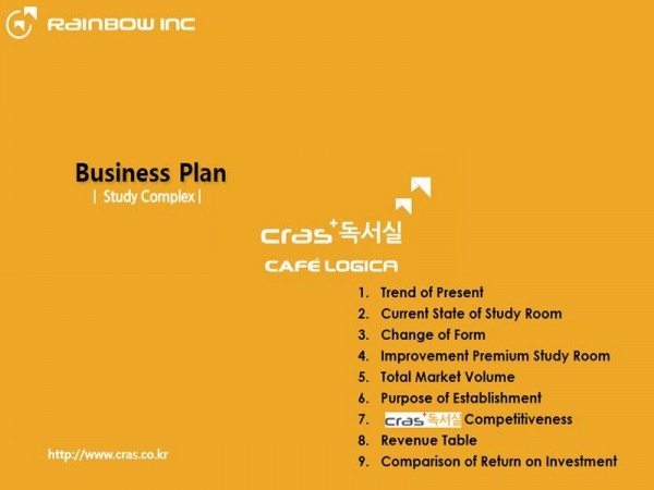 1960년대 자기 공부방이 없던 시절에 학습 공간으로 출현한 독서실은 안정적인 수익을 보장하는 아이템으로 꾸준히 성장해 왔다. 그러나 기존 독서실이 노후화되면서 2010년을 기점으로 학습능률이 높으면서 다양하게 이용할 수 있는 공간에 대한 필요성이 더해져 프리미엄 독서실이라는 형태로 발전하기 시작했다. ㈜레인보우는 ‘크라스플러스’란 브랜드로 이용자에게 복합학습공간을 제공하는 프리미엄 프랜차이즈 독서실을 운영하는 회사다. ‘크라스플러스’는 라틴어로 ‘내일, 장래에, 앞으로’라는 뜻인 크라스(CRAS)에 플러스(+)를 더해 큰 꿈을 가진 젊은이들이 모여 미래에 큰일을 이룰 수 있는 공간을 제공한다는 개념이라는 것이 우상윤 대표의 설명이다. 레인보우는 현재 직영점과 가맹점을 합쳐 전국에 30여 개의 크라스플러스 독서실을 운영하고 있다.