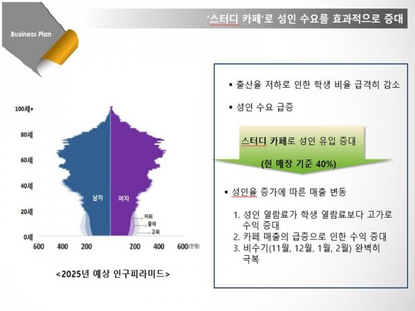 프리미엄 독서실로 전환하여 새로운 가치를 창출할 수 있는 핵심요인과 사업 리스크 헷지 방향을 제시하고 있다.