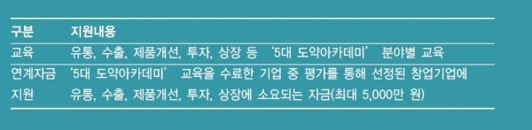 유통, 수출, 투자유치, 제품 개선, 상장 등 후속 교육 및 자금을 지원한다. 창업 사업화 지원 사업의 수혜기업에 한하여 지원하는 후속연계지원 사업이다. 교육비는 전액 무료이며 연계자금 지원을 받기 위해서는 해당 아카데미를 이수해야 한다. 창업기업의 희망에 따라 복수의 아카데미 수강이 가능하다.