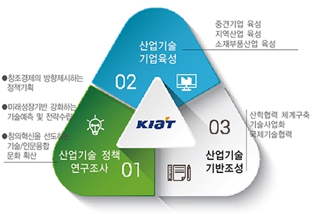 한국산업기술진흥원(KIAT: Korea Institute for Advancement of Technology)은 정부의 공공기관 선진화계획에 따라 2009년 5월 4일 설립된 산업통상자원부 산하 준정부기관이다. 한국산업기술재단, 한국기술거래소, 정보통신연구진흥원, 산업기술평가관리원, 한국부품소재진흥원 등 산업기술분야 5개 기관을 개편 통합하여 탄생했다. 주요 역할은 △ 중견기업과 지역산업, 소재부품산업을 육성하는 산업기술기업 육성, △ 미래성장기반을 강화하는 기술예측 및 전략수립을 위한 산업기술정책연구조사, △ 산학협력체계를 구고 축하고
