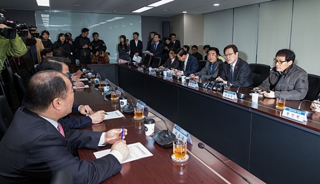 22일 최종구 금융위원회 위원장(사진 우측에서 두번째)이 여신금융협회에서 슈퍼, 제과점, 편의점, 외식업중앙회, 대한약사회, 등 소상공인단체와 간담회를 갖고 있다.<사진 제공 금융위원회>