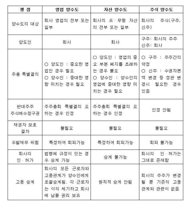 M&A의 전략을 수립한 후 M&A 대상을 선정하기 위해 자료를 수집해 후보군을 선정한다. 주식양수도, 자산양수도, 영업양수도, 합병 등의 다양한 방식 중에 적합한 거래형태를 결정하게 되는데, 일반적으로 주식양수도방식이 이용되고 있다.